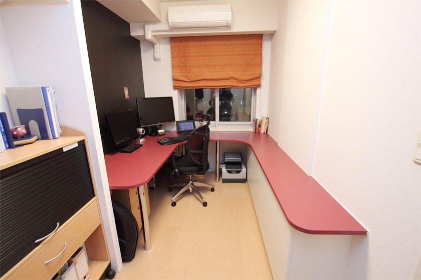 また、お客様がお酒がご趣味ということもあり、趣味をより存分に堪能できるようリビングにワインセラーも造作・設置しました。そのほか、書斎においてもリフォーム工事を行いました。既製品の家具から、オーダーメイドで製作したカウンターデスクに取り替えるによって、お客様の使い勝手に即した、作業効率のよい空間に仕上げました。